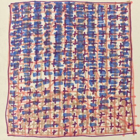 Ed drew from the other 6x6 foot piece in the gallery “Already There”, capturing the sense of space in a small pencil sketch and then zooming in closer to explore the individual marks and shapes that compose the painting.