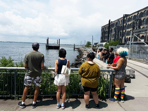 Despite the heat and varying levels of experience doing theatrical work, the AYB students were incredibly open and game to go with me on the journey of the neutral person. A real highlight for me as a teacher involved using the natural beauty of BWAC’s pier to do a famous exercise, The Farewell. This exercise is set on a pier, as the neutral person is running through a crowded waterfront, pushing through a crowd to reach a boat and a loved one before they leave. Sadly they miss the boat and wave goodbye until the boat moves out of sight. It was a gorgeous treat to watch students perform this on a real pier and it was great to hear from them about how great it was to be staring at the ocean, moving with it, becoming one with it. John likened this to the best kind of therapy, and as a teacher, I take that as a real compliment.