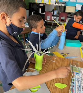 Teaching Artist Evelyn Beliveau switched some things up a bit at PS 6, our partnership school in Jersey City. The overall media remained the same, but classes changed materials from what they used in previous weeks. Our rules bent a bit (pun intended) but we stuck to making paper interlock where possible and using zero or a minimal amount of tape. Achieving this goal requires ingenuity - and many pondered and planned and therefore succeeded.