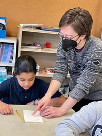 Evelyn writes: “We had a great first day back at PS 6 in 2023! Alongside the invaluable Dennis and Sarah, I presented a lesson on making accordion books of the four seasons. Students looked at art historical examples of interpretations of the seasons in the forms of personification, abstraction, narrative scenes, and landscapes/nature scenes.