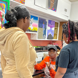 Students worked in layering watercolor paint and matching up their pieces in a diptych manner. Zian's pieces show great mixes of color and her hybrid painting has a futuristic look to it. Everyone loved it. Critique included compliments - and ideas for future lessons.