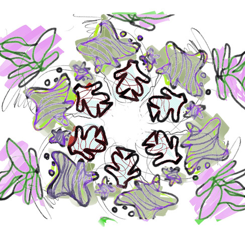 Upon further exploration into Lewis’s work, I found information on her current installation at Brooklyn Bridge park, We Pressed Our Bellies Together and Kicked Our Feet, We Became Something So Alien That We No Longer Had Natural Predators, 2022. The motifs in these works reminded me of the undulating patterns I’ve witnessed in mandalas, circular creations used in Eastern spiritual practices as religions such as Buddhism and Hinduism. I learned that Lewis’s works were formed with Ankra symbols- a logographic system of writing.