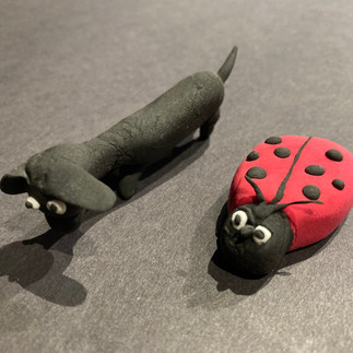 In the animal category Jacob swiftly started with a pink and gold bull, Ed created a squirrel and a snail, Keenan a portrait of her dog and a lady bug, Gem formed a pink inchworm, Adji a colorful butterfly, Ty a bumble bee, and Scarlett a pair of ducks, Clementine created two variations on a cat. In the mythical animal subset, Cheyenne formed a purple cat and a unicorn. (In that order below)