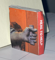 The hand and face on my miniature book, “Here to Help,” are from an image of the Apollo Belvedere. The Apollo Belvedere is a famous sculpture said to have inspired the work of Michelangelo among others. A Roman marble copy is in the Vatican Museum and there is a plaster cast at Sir John Soane’s. To read more about this lost Greek statue’s history, click here.”