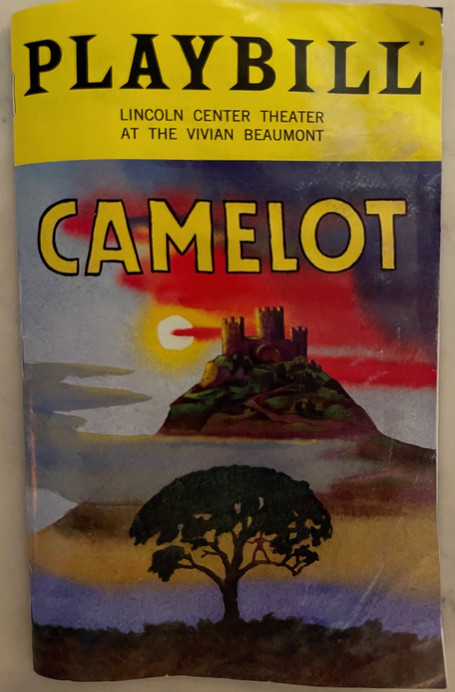 The cover art for the Camelot playbill (principal poster artist: James McMullan) depicts the castle high atop a hill with King Arthur and Queen Guenevere's royal domain below - bits taken from the show's lyrics and overall an audience member's vision of what Camelot might look like (well, at least, mine!). The Lincoln Center Theater Review magazine has a cover design by Nick Psomiadis with a different point of view - the interior of a castle or an abbey. Text helps - yes - but once seeing the show, totally not needed.
