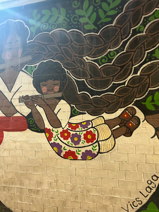 Gia at work on mural and mural detail.