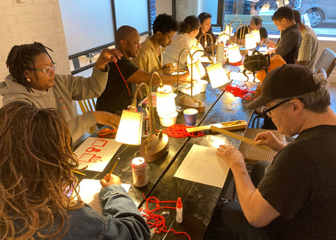 For class work, participants were instructed to create their own depictions of home through the use of red yarn and water color on paper. These depictions can be of an item that reminds you of home, a self portrait/portrait of a family member, or even your home itself. There were many different and beautiful iterations of home that were created by the end of Tuesday’s session.