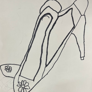 Student at work, and shoe drawings