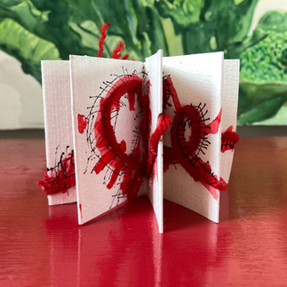 Meridith crafted an homage to Suh’s Going Home drawing which depicts the house, spiraling staircase, and tiny figure walking in his piece. It was made as a miniature book to be placed inside the 180 Franklin Dollhouse for our upcoming showcases. Two pieces for the price of one!