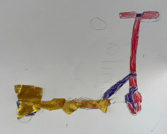 Evelyn and Jas’ works both drew comparisons to childhood entertainment such as Blues Clues and Dr. Suess. Evelyn’s piece was a view of their apartment from their couch, while Jas’ drawing depicted their garden. Both works also included plant life and looked as though the work was made by one continuous line of yarn.