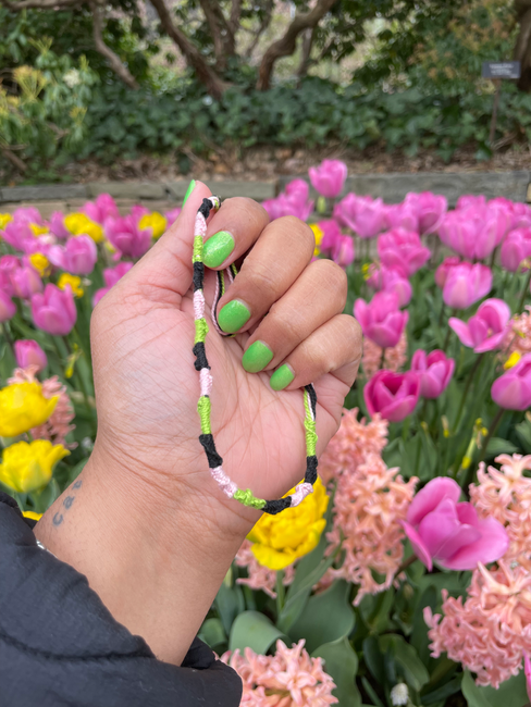 Ajani came up with the term “freestyling” when making her bracelet. This means that she didn’t follow the pattern and just created her own pattern. It was also really nice to see people getting inspired to also freestyle their friendship bracelets. It was also really interesting to see what colors people picked and why they chose them. Some of the artists relied on their knowledge of color theory.