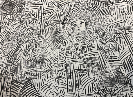 Assata reflects upon the session: “Folklore is one of the biggest elements of Caribbean culture. I was inspired by Firelei Báez’s exhibition, “The fact that it amazes me does not mean I relinquish it” where she uses “Palimpsests” or twice-used documents as backgrounds for her extremely detailed and vibrant paintings. I believe I was so drawn to Baez’s work because I couldn’t tell exactly what I was looking at; most of the images walk the line between human and mystical so well that it’s almost disturbing.