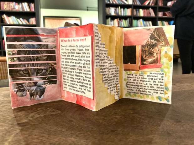 The resulting zines were a diverse collection of media and styles, with some featuring collages of found text and images, and others showcasing unique pages created with watercolors, alcohol-based markers, and decorative paper.”