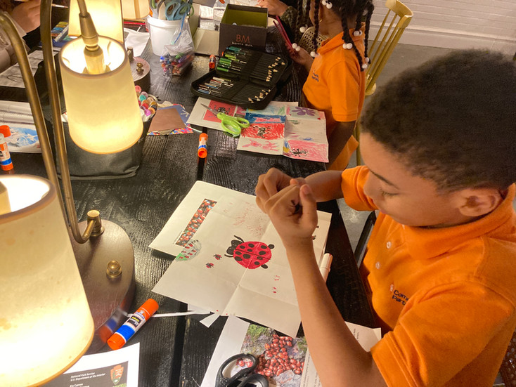 We kicked things off on Zoom by exploring the phases of the moon, then dove into zine-making at 180 Franklin, focusing on the theme of non-native species. We are so excited to have lead a huge seasonal printmaking session at PS 34!