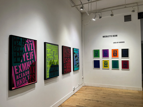 The paintings display a range of bold color and different approaches to composition, blending, and texture. Certain letters were more recognizable, while others became primarily abstract shapes due to cropping. Ambiguous scale led to comparisons to architecture, especially in Ajani’s “Z,” with a landscape-like effect in the background due to a judicious use of water to thin the paint.